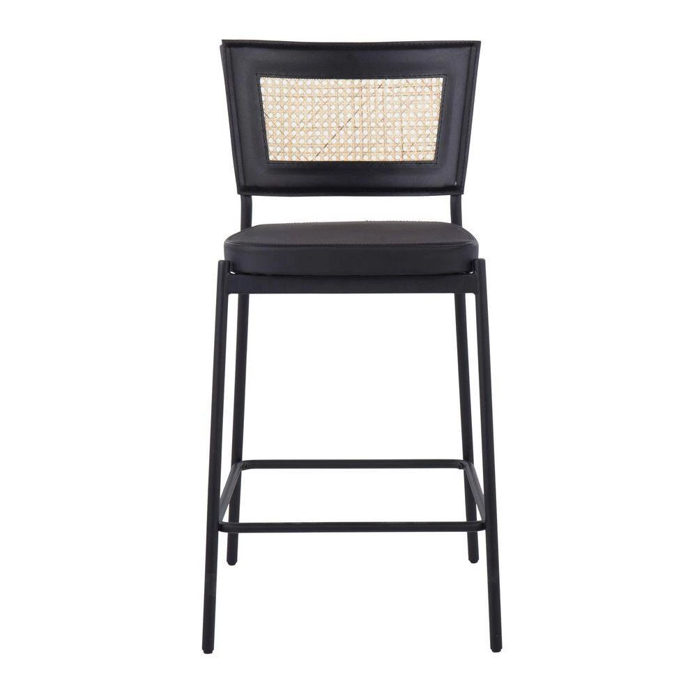 Perfect for your counter area, the contemporary design of the Rattan Tania Counter Stool by Lumisource features unique rattan accent and faux leather upholstery. With a comfortable padded seat, the Rattan Tania Counter Stool has black metal legs and a footrest for comfort. Includes 2 stools.