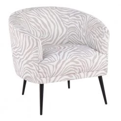 Fabulous and chic, the Lumisource Tania Accent Chair is an updated take on a classic. Featuring sleek fabric upholstery with zebra print and black metal legs, this chair is perfect for any sitting area. The Tania Accent Chair is available in a variety of colors, sure to look great in any room.