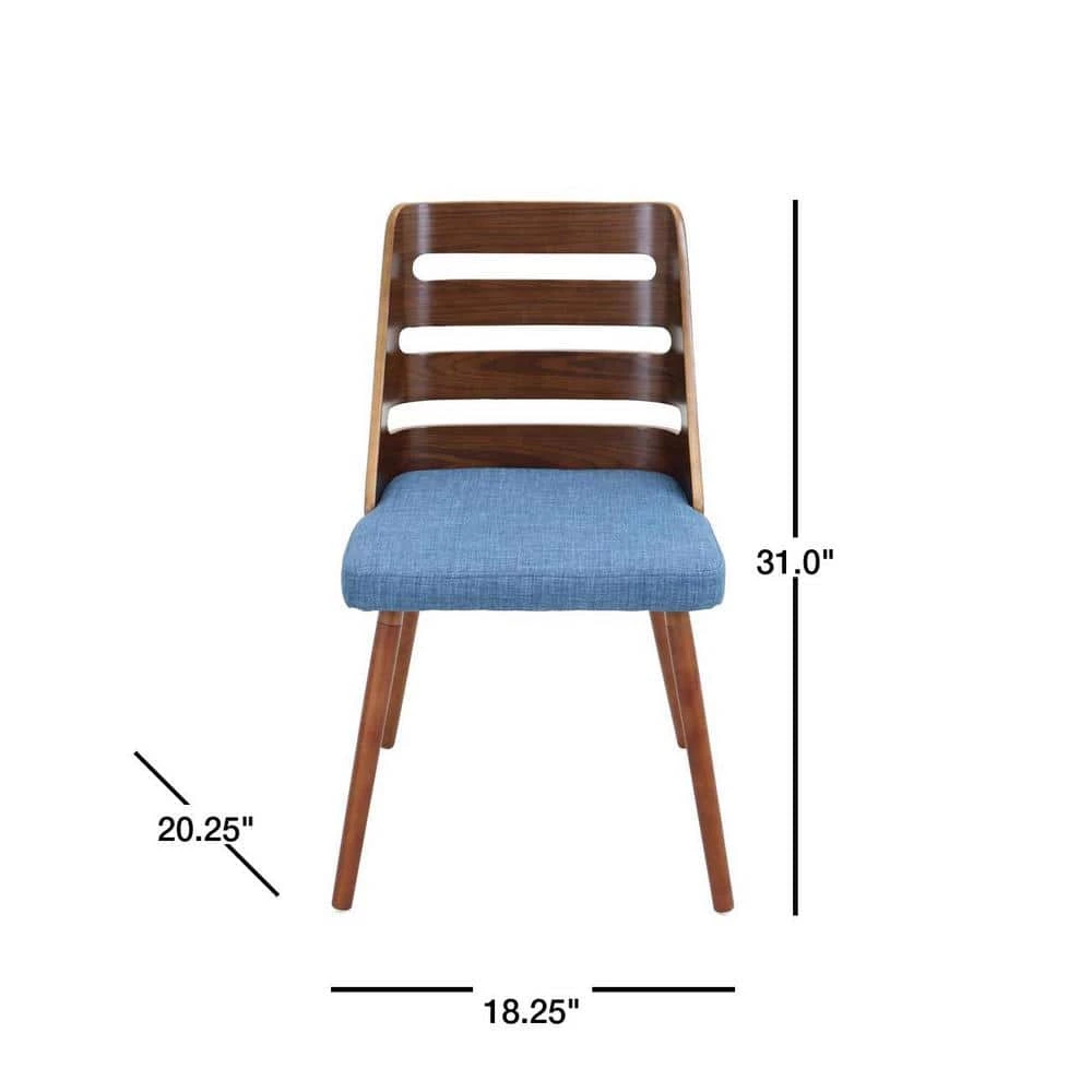 The LumiSource Trevi Chair is a modern take on a signature ladder back design. With a strong mid-century vibe, this updated look with make a statement in any room. A plush seat is upholstered in woven fabric, accented by brilliant walnut colored wood backrest and sturdy wooden legs. Available in blue or green, the Trevi Chair will add an enjoyable pop of color to accent your favorite room.
