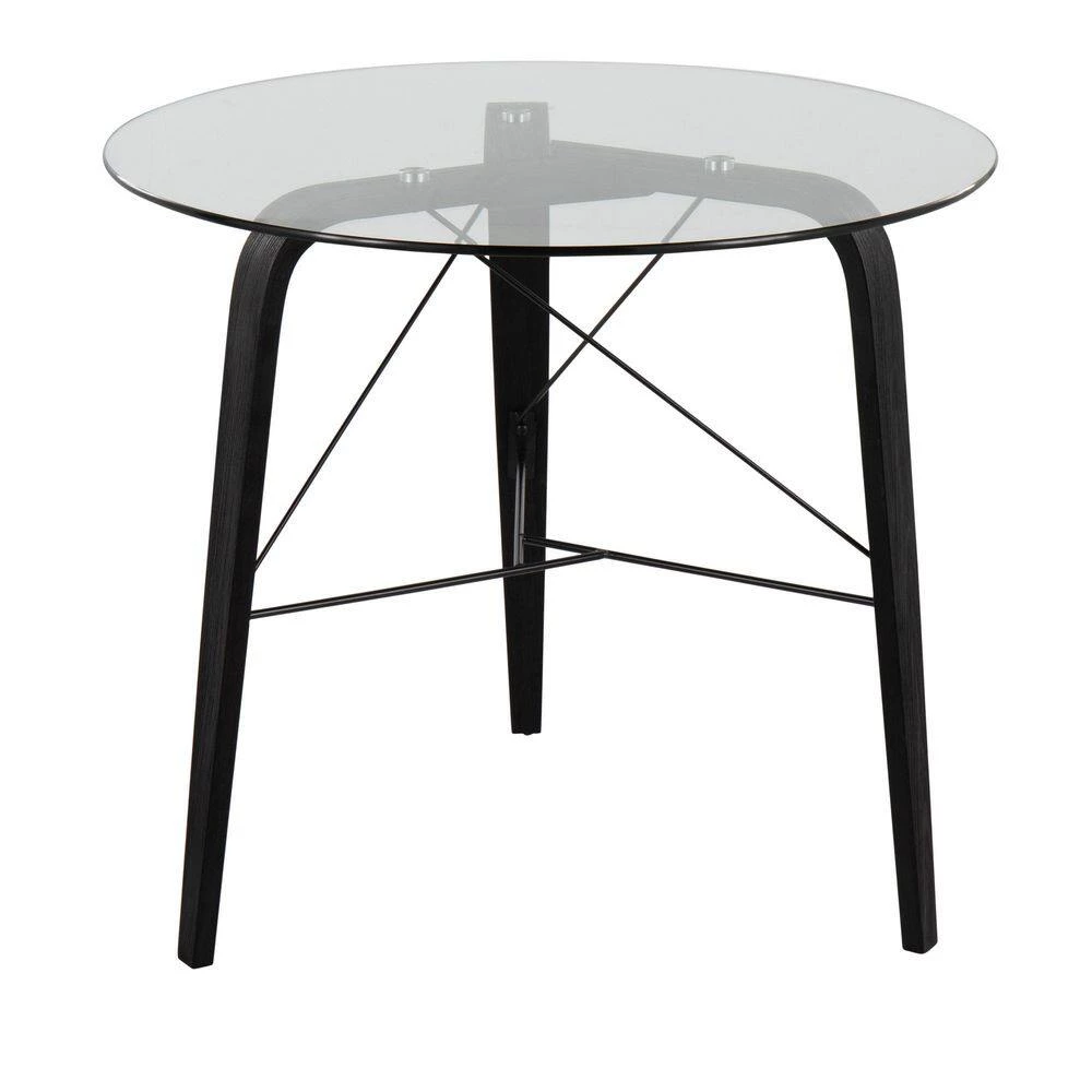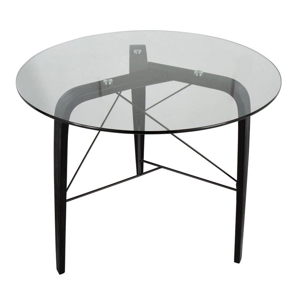 Eclectic and ultra unique, the Lumisource Trilogy Round Dinette Table will bring cosmopolitan style to your dining area. With its sturdy construction, sleek curves and retro flair, the bent black wood is complimented by a circular glass top. Includes 1 table.