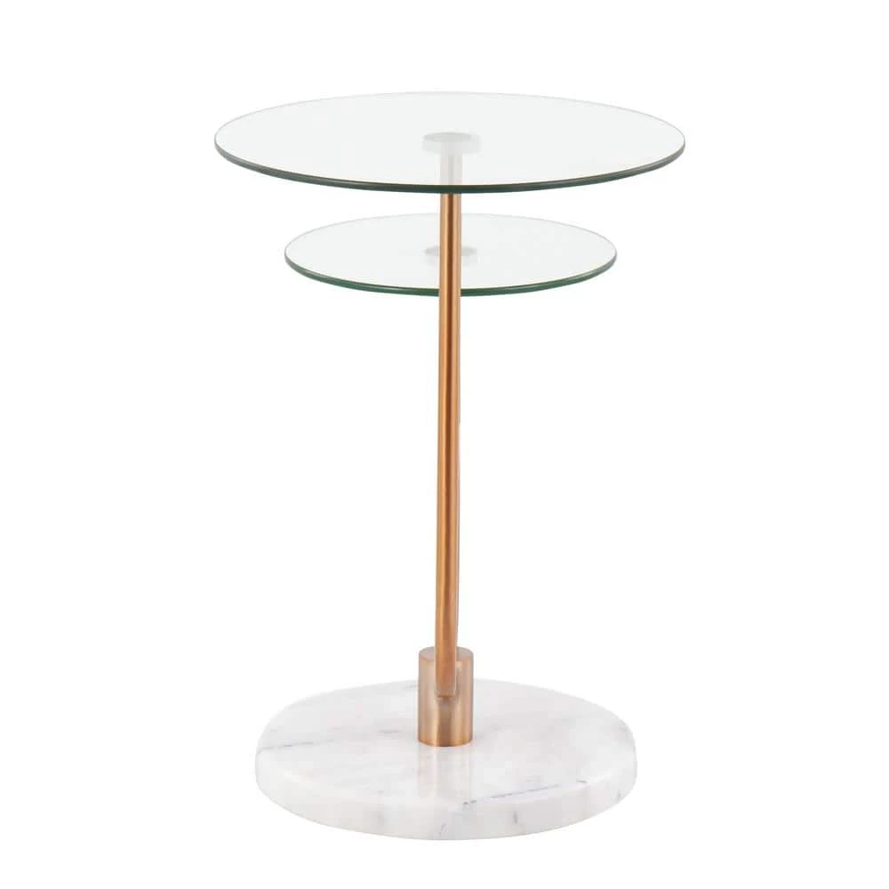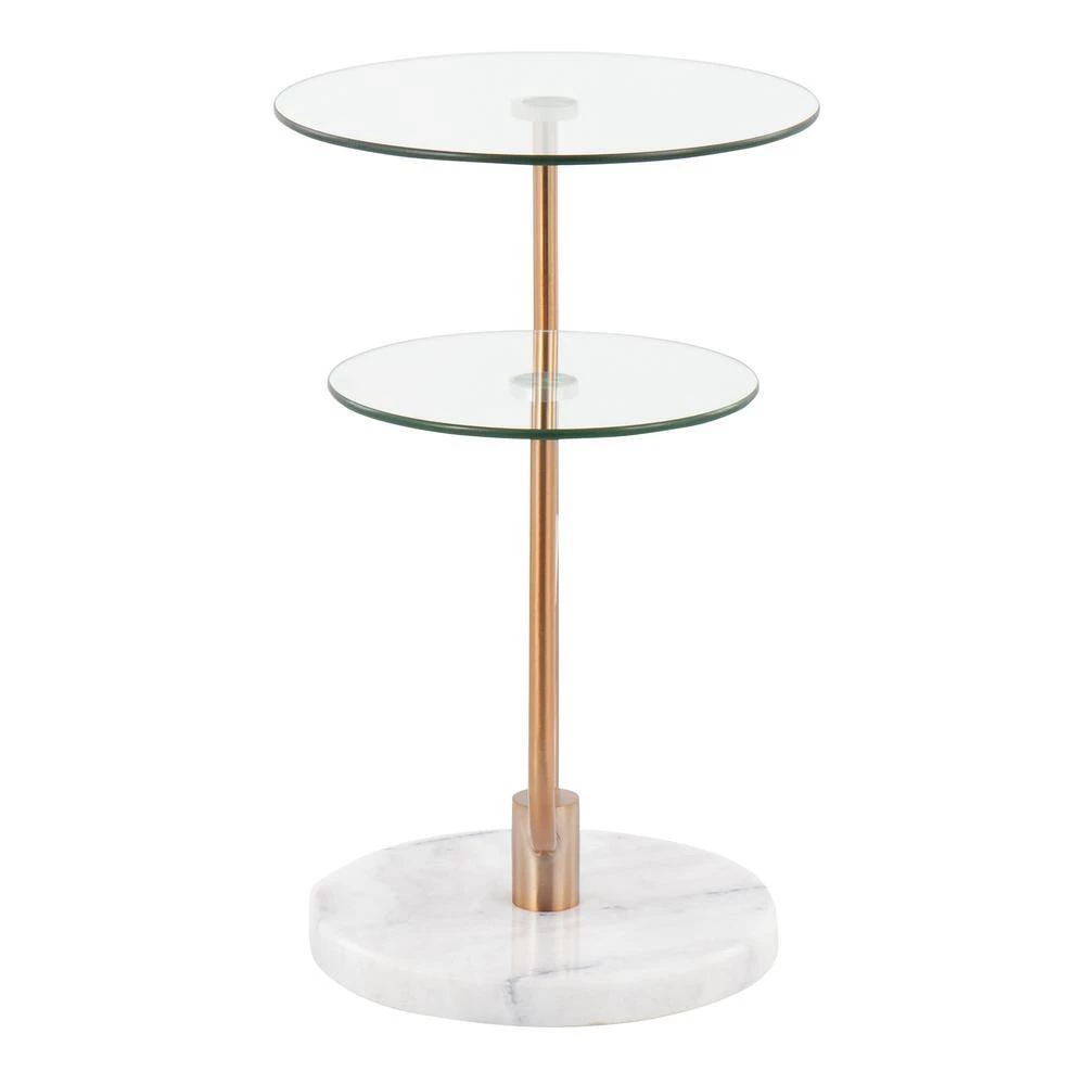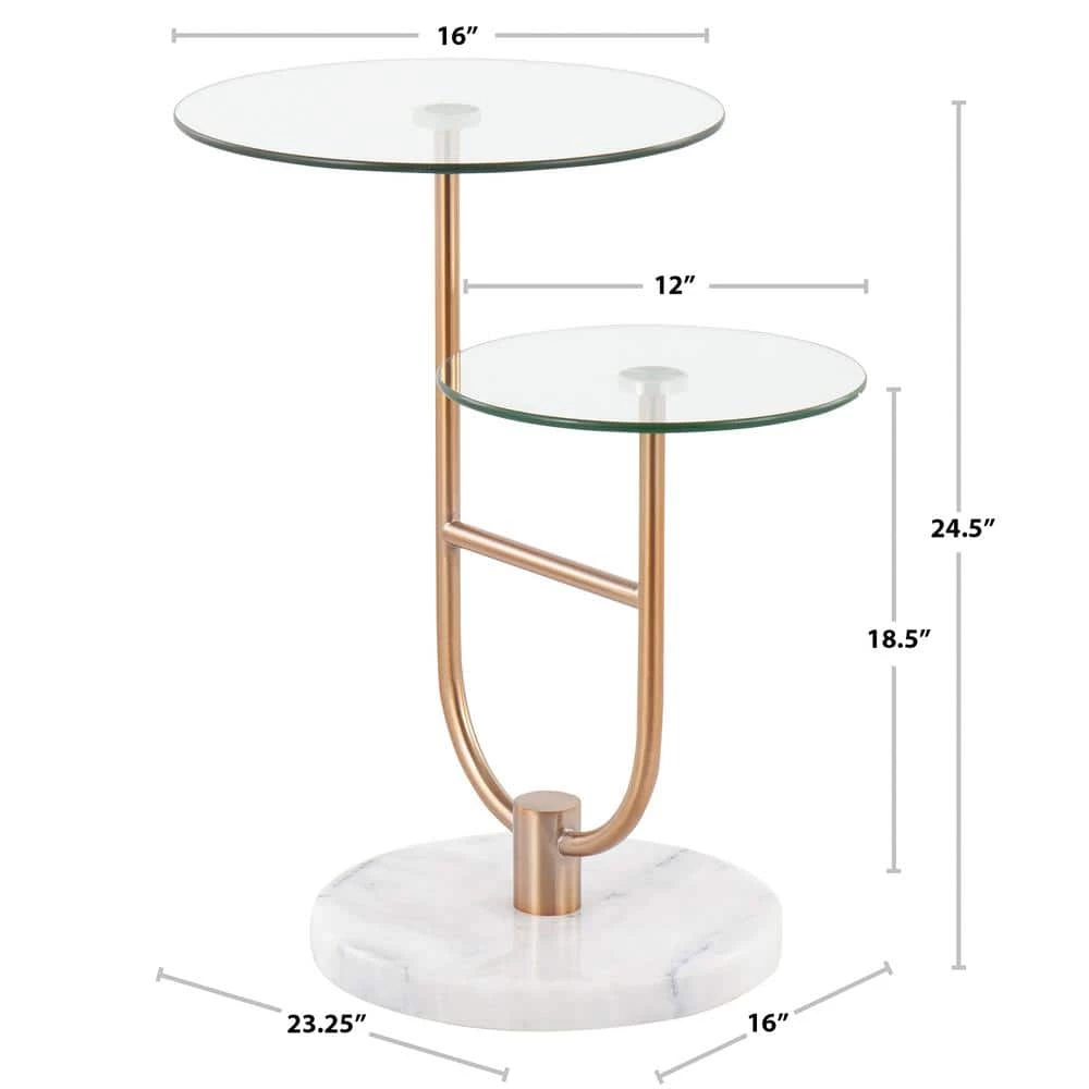A chic mix of materials creates a contemporary look that will fit any room. The Trombone Side Table by Lumisource is the perfect size for smaller spaces. With a metal frame, a tiered table top design, and a marble base, the Trombone Side Table will look great next to any sofa or accent chair.