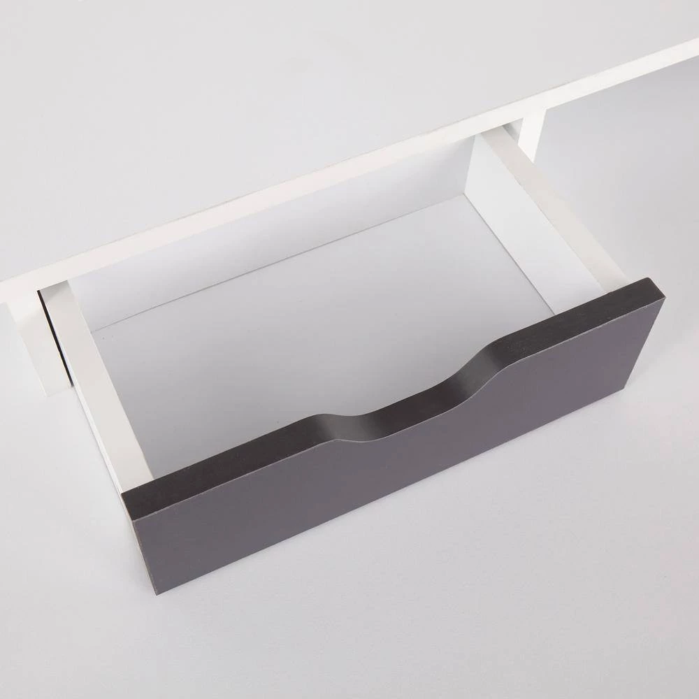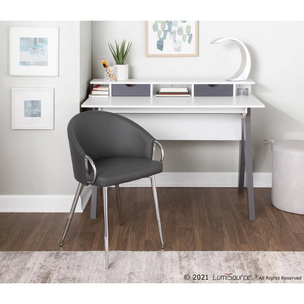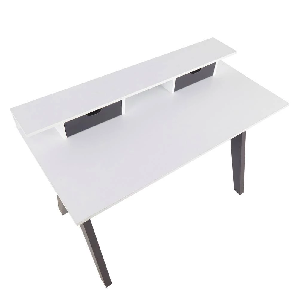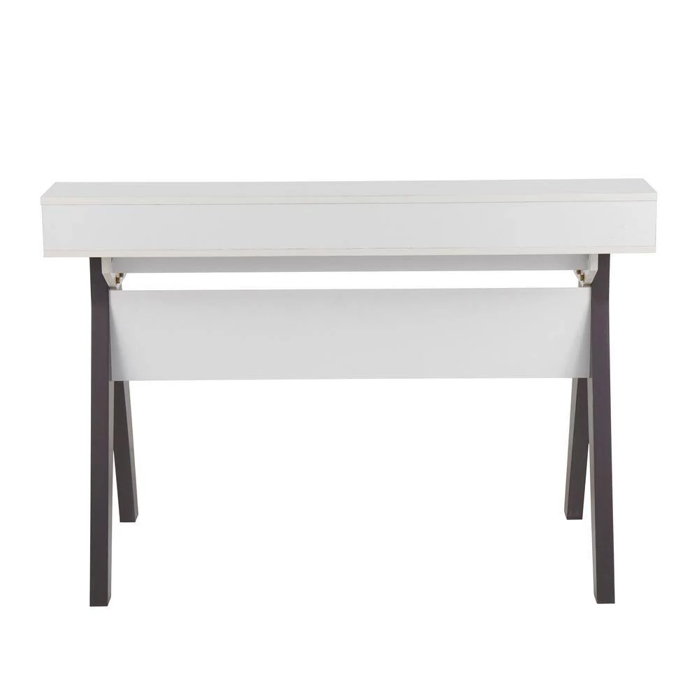 Add a touch of contemporary style to your home office with the Wishbone Desk by LumiSource. This unique design embodies architectural character and is sure to wow. The Wishbone Desk features a white wood top with grey wood accents, a raised shelf, and 2-drawers for storage.